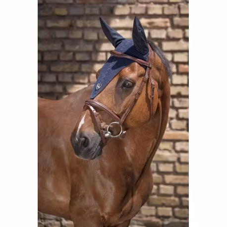 Lång flughuva i virkad 100% bomull, dekorerad med en central twist, polyesteröron i PVC, krönt med en liten blå/vit/röd fläta.Storlek Full